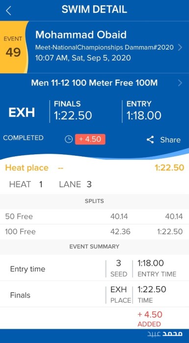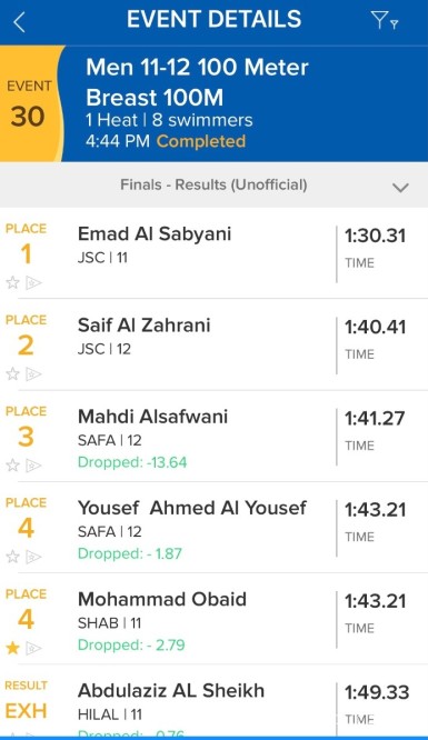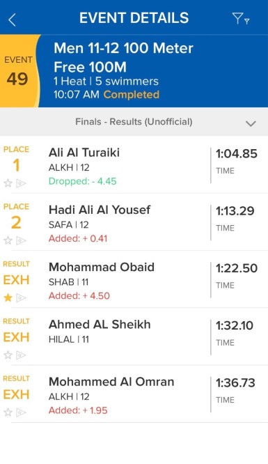 - المركز الثالث (EXH) - 100 متر حرة - فئة 11-12